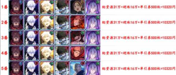 総計リソース数28万+影宿儺+覚醒五条悟+託された一命+夜真人+SSRチケット2枚+SSR廻想31体¥5,040 -