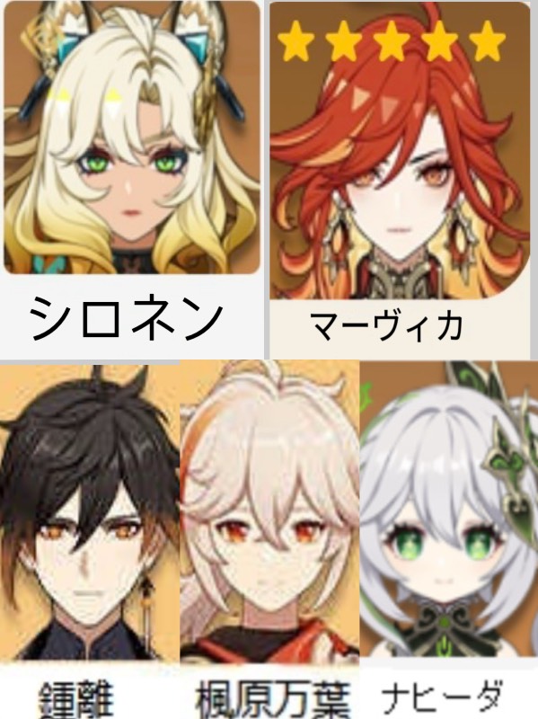 💫(原神)Asia 🔥★5×5 シロネン➕マーヴィカ➕楓原万葉➕ナヒーダ➕鍾離¥25,000 -