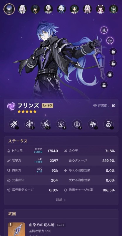| 特徴2 | 星5キャラ完凸12 星5武器完凸16 |