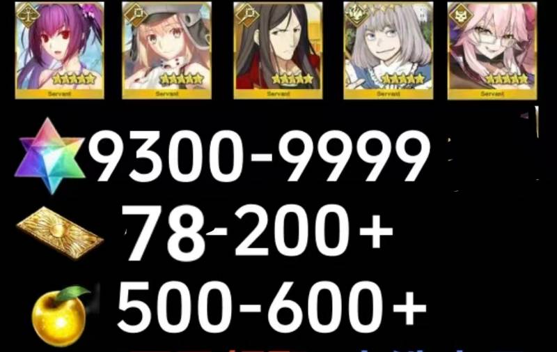 【画像の所持】聖晶石9300-9999個+果実500-600個+呼符70-200枚+その他¥17,900 -