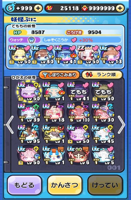 妖怪ウォッチぷにぷにのアカウントで絞り込める項目