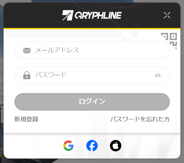 2.GRYPHLINEアカウントのメールアドレスとパスワードまたは、連携しているアカウントのログイン情報を提示