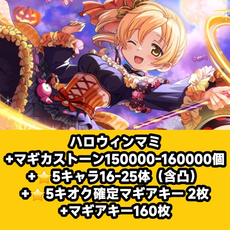 ハロウィンマミ+マギカストーン150000-160000個+⭐5キャラ16-25体(含凸)+⭐5キオ¥800 -