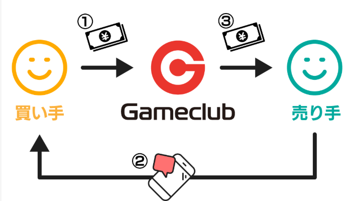 購入者が支払った代金は一時的にゲームクラブが預かり、売り手への商品受渡しを確認後に支払われるため、エスクロー(預託)システムで安全に取引が進む。